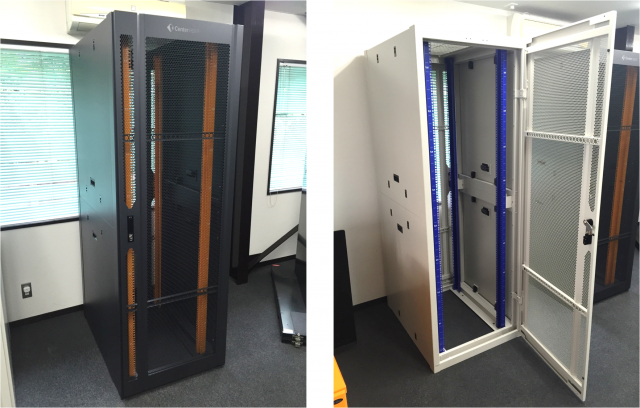 下記の画像は、フレームは標準的なラックのままで、ラック内部の支柱(マウントアングル・マウントレール)のみカラーリングを変えたラックになります。