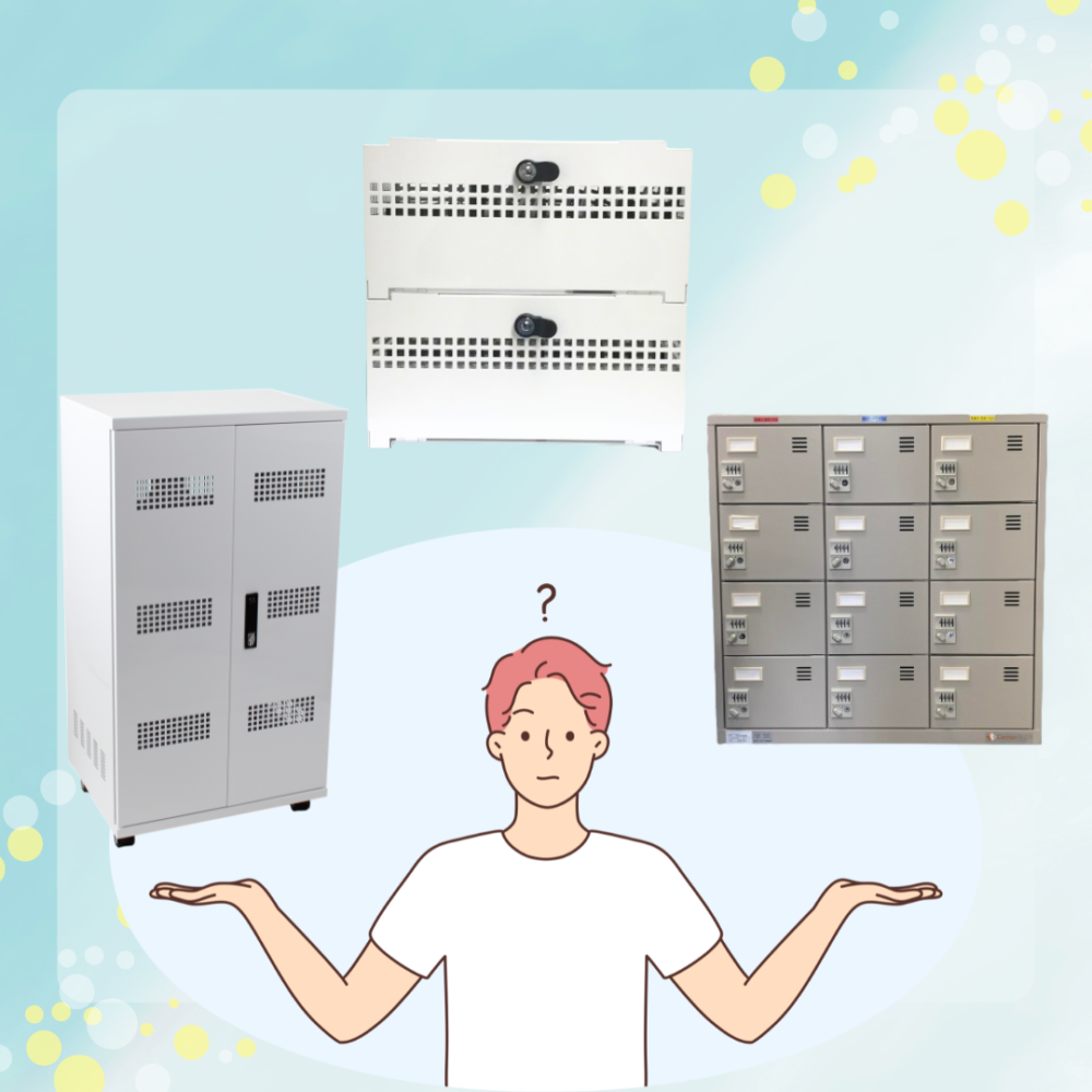 センターピアでは充電保管庫として「モバイルラック」「GIGAスクール構想向け保管庫」「充電ロッカー」「VR充電保管庫」の4種を取り揃えております。また、お客様のニーズに併せて「ワイヤレス充電保管庫」や「バッテリー搭載充電保管庫」など多くの商品を製作してきました。この記事では、改めてそれぞれの特徴をご紹介致します!